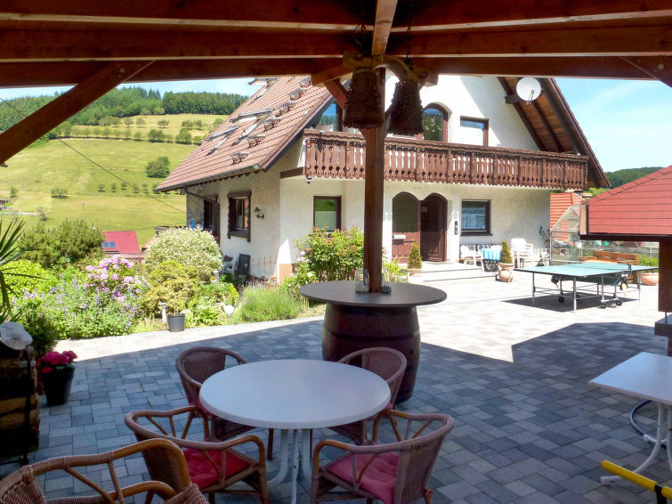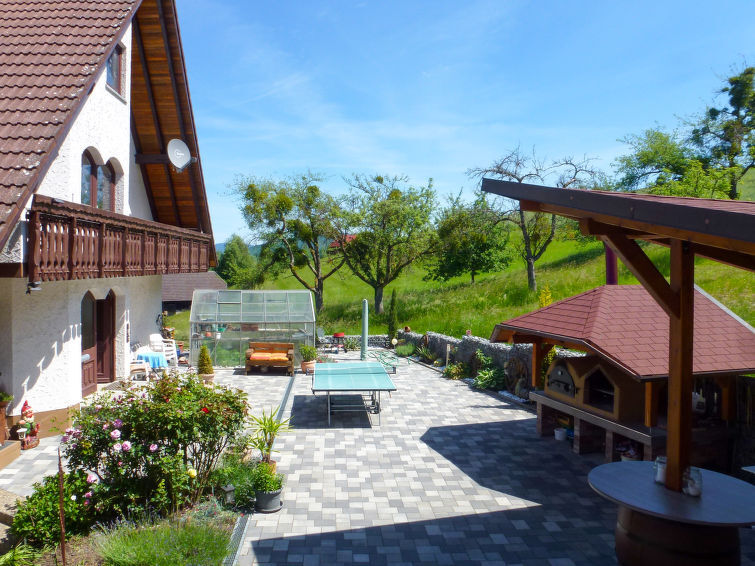 Appartementencomplex "Pension Himmelsbach". In de wijk Welschensteinach, aan de rand van de plaats, 4 km van het centrum van Steinach, rustige, zonnige, verhoogde ligging tegen een helling, te midden van groen. Voor medegebruik: terrein, ligweide, openluchtzwembad (10 x 5 m, seizoensgebonden beschikbaarheid: 01.Jun. - 30.Sep.). Glijbaan, tafeltennis, barbecue, kinderspeelplaats. In het complex: salon, biljart, centrale verwarming, wasmachine (extra), droger (voor medegebruik, extra). Trappenweg (17 treden) naar het huis. Parkeerplaats bij het huis. Winkel 1 km, levensmiddelenwinkel 4 km, restaurant 1 km, bushalte 100 m, treinstation "Steinach" 4 km, openluchtzwembad 4 km, overdekt zwembad 4 km. Golfterrein (18 holes) 8 km, tennis 4 km, manege 1 km. Attracties in de buurt: Zeller Keramik 5 km, Altstadt Haslach 8 km, Freilichtmuseum Vogtsbauernhöfe 8 km. Bekende meren kunnen gemakkelijk worden bereikt: Mummelsee 35 km. Wandelgebied Kinzigtal 2 km. Naar wens gebruik van de gemeenschappelijke bubbelbaden. In het aangrenzende achterhuis bedrijft de eigenaar een klein landbouwbedrijf met runderen, geiten en hazen.