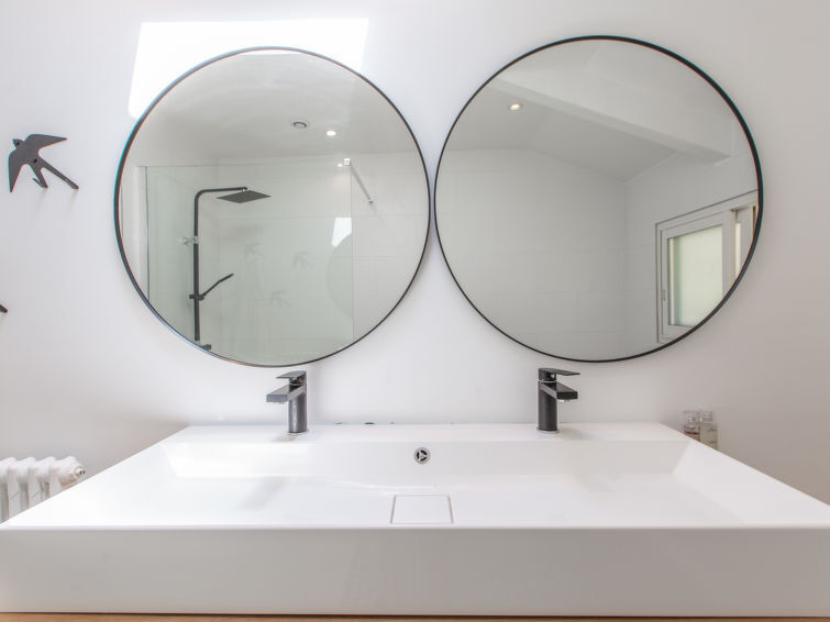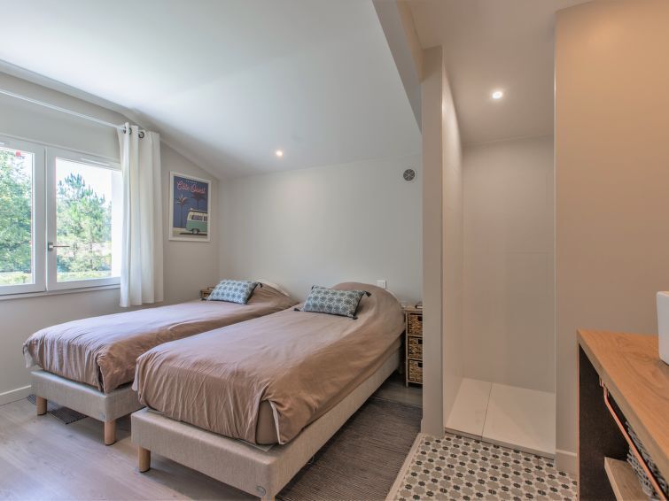 Villa 5-kamers 200 m2 op 2 verdiepingen. Ruim en licht, comfortabel en mooi ingericht: groot woon-/eetkamer 70 m2 met open haard en eettafel. Uitgang naar de tuin, naar het terras. Kleine bureau met TV (Flatscreen TV). 2 kamers, elke kamer heeft 1 2-pers bed (180 cm, lengte 200 cm). Open keuken (oven, afwasmachine, 3 inductiekookplaten, broodrooster, waterkoker, magnetron, diepvriezer, elektrische koffiemachine, pads voor de koffiemachine (Nespresso) extra) met eettafel. Bad/douche, aparte WC, dubbele wastafels. Bovenverdieping: 2 kamers, elke kamer heeft 2 bedden (90 cm, lengte 200 cm), wastafel en douche. Groot galerij. Uitgang naar het balkon. Aparte WC. Verwarming, air-conditioning. 2 balkons, op het zuidwesten gelegen en op het noordoosten gelegen, 2 terrassen gedeeltelijk overdekt, op het zuidwesten gelegen en op het noordoosten gelegen. Terrasmeubelen, barbecue (verrijdbaar), ligstoelen (8). Mooi uitzicht op het meer, het zwembad en het bos. Ter beschikking: wasmachine, droger, strijkijzer, kinderstoel, kinderbed, haardroger. Internet (Internet (WiFi), gratis). Rookvrij huis. Rookmelders. In plaats van een afgesloten slaapkamer bevinden sommige slaapgedeeltes zich in een open ruimte (galerij, nis, etc.). Aanbod door een particulier volgens art. 155, IV van CGI.