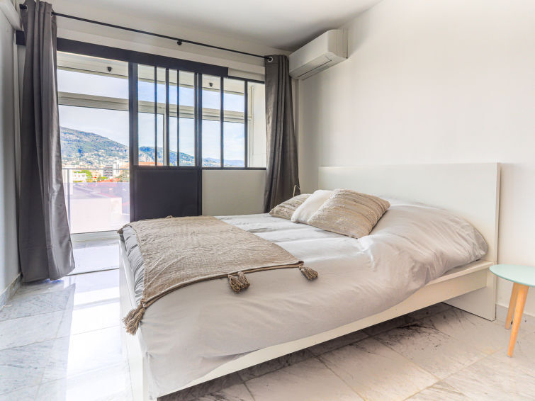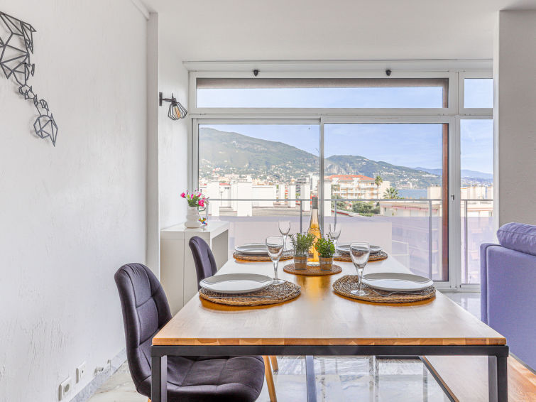 Appartement 2-kamers 60 m2 op de 5e verdieping, op het zuiden gelegen. Ruim en licht in 2024, comfortabel en modern ingericht: groot woon-/slaapkamer met 1 2-pers divanbed (1 x 140 cm, lengte 190 cm), Flatscreen TV en air-conditioning. 1 kamer met 1 2-pers bed (140 cm, lengte 190 cm), air-conditioning. Open keuken (4-pits kookplaat, broodrooster, waterkoker, magnetron, elektrische koffiemachine). Douche/WC. Verwarming. Uitzicht op zee, de bergen en de plaats. Ter beschikking: wasmachine. 1 klein huisdier/hond toegestaan. Rookmelders. Aanbod door een particulier volgens art. 155, IV van CGI. 06104001474OW