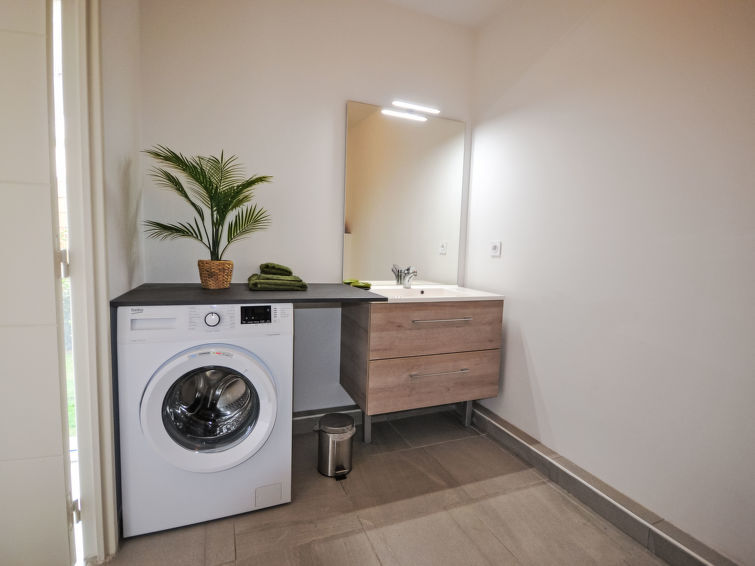 Appartement 2-kamers 43 m2, op de begane grond. Comfortabel en modern ingericht: woon-/eetkamer met panoramavenster met TV (Flatscreen TV). Uitgang naar het terras. 1 kamer met panoramavenster met 2 bedden (80 cm, lengte 200 cm). Uitgang naar het terras. Open keuken (oven, afwasmachine, 2 inductiekookplaten, broodrooster, waterkoker, magnetron, elektrische koffiemachine, pads voor de koffiemachine (Nespresso) extra) met eettafel. Douche/WC. Elektrische verwarming, heteluchtverwarming. Terras 9 m2, kleine tuin 26 m2, op het zuiden gelegen. Terrasmeubelen, zitgelegenheid. Uitzicht op de tuin. Ter beschikking: wasmachine, strijkijzer, haardroger. Internet (WiFi, gratis). Garage, breedte 260 cm. Niet rokers woning. Rookmelders, brandblusser. Aanbod door een particulier volgens art. 155, IV van CGI. 1300100590318