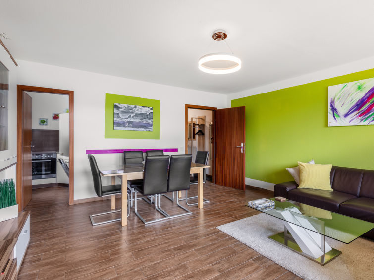 " Top C 34", appartement 3-kamers 65 m2 op de 1e verdieping. Licht, modern en smaakvol ingericht: hal. Woonkamer met eettafel en Kabel-TV (Flatscreen TV), DVD. Uitgang naar het balkon. 2 2-pers. kamers. Kleine keuken (oven, afwasmachine, 4 keramische glas kookplaten, elektrische koffiemachine). Bad/WC. Balkon 10 m2. Balkonmeubilair. Mooi panoramazicht op de bergen en het landschap. Ter beschikking: haardroger. Internet (WiFi, gratis). Parkeerplaats nr. 91. Niet rokers woning, rookvrij huis. Rookmelders. De woning is aan de rechterkant van de gang. 50415-006730-2020