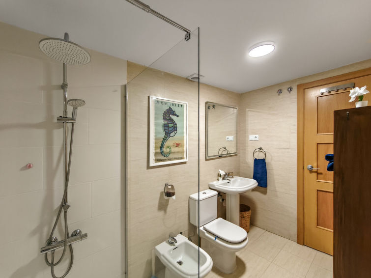 "Terrazas de Calamijas", appartement 3-kamers 85 m2, op het zuidwesten gelegen. Het objekt is geschikt voor 4 volwassenen + 1 kinderen. Doelmatig en comfortabel ingericht: woon-/eetkamer met Digitale TV. Uitgang naar het terras. 1 kamer met 2 bedden (90 cm, lengte 200 cm), 1 divanbed (80 cm, lengte 190 cm). 1 kamer met 1 2-pers bed en bad/bidet/WC (privé). Open keuken (oven, afwasmachine, 4 keramische glas kookplaten, broodrooster, waterkoker, diepvriezer, elektrische koffiemachine). Douche/WC. Air-conditioning, heteluchtverwarming. Terras 10 m2, overdekt terras 10 m2. Terrasmeubelen. Panoramazicht op zee en de plaats. Ter beschikking: wasmachine, strijkijzer, kinderstoel, kinderbed, haardroger. Internet (WiFi, gratis). Parkeerplaats nr. 236. Geen lift. Chromecast TV. VUT/MA/64376 // Reg. Nr.: ESFCTU0000290440007186830000000000000000VUT/MA/643767