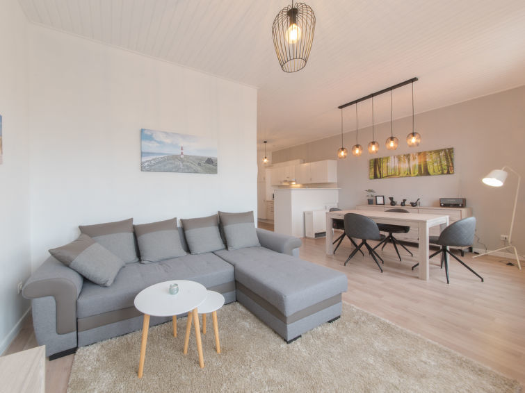 "Carnac Station sunny and bright app", appartement 2-kamers op de 2e verdieping. Het objekt is geschikt voor 2 volwassenen + 2 kinderen. Comfortabel en smaakvol ingericht: woon-/slaapkamer met 1 divanbed (140 cm, lengte 195 cm), Digitale TV, internationale TV-zenders, Flatscreen TV en stereo-installatie. 1 2-pers. kamer met 1 2-pers bed (1 x 160 cm, lengte 200 cm). Open keuken (oven, afwasmachine, 4 keramische glas kookplaten, broodrooster, waterkoker, magnetron, elektrische koffiemachine). Douche/WC. Elektrische verwarming. Zeer mooi uitzicht op het dorp. Ter beschikking: wasmachine, kinderstoel, kinderbed, haardroger. Internet (Internet (WiFi), gratis). Geschikt voor families. 1 klein huisdier/hond toegestaan. Rookmelders, brandblusser, geen lift.