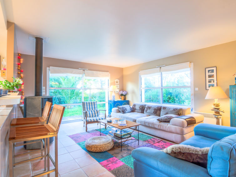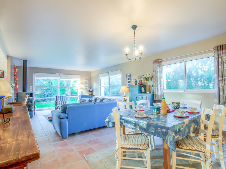Huis 5-kamers 140 m2 op 2 verdiepingen. Comfortabel en mooi ingericht: woon-/eetkamer. Uitgang naar het terras. 1 kamer met 1 2-pers bed (160 cm, lengte 200 cm). Uitgang naar de tuin. Open keuken (oven, afwasmachine, 4 keramische glas kookplaten, magnetron, diepvriezer, elektrische koffiemachine). Uitgang naar het terras. Douche, aparte WC, dubbele wastafels. Bovenverdieping: kleine, open salon met TV (Flatscreen TV), DVD. 1 kamer met 1 2-pers bed (140 cm, lengte 190 cm). 1 kamer met 2 bedden (90 cm, lengte 190 cm). Uitgang naar het balkon. 1 kamer met 1 2-pers bed (140 cm, lengte 190 cm). Uitgang naar het balkon. Badkamer, aparte WC. Elektrische verwarming. Terras 12 m2. Terrasmeubelen, barbecue. Ter beschikking: wasmachine, droger, strijkijzer, kinderstoel. Internet (WiFi, gratis). Rookmelders. 56234000293FY