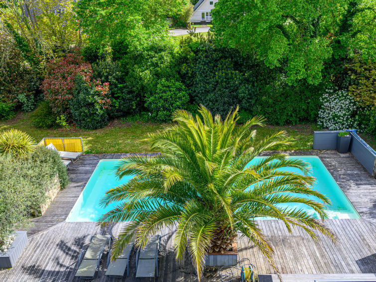 Huis met 3 woningen "Villa Pyramide I", van 3 verdiepingen. Aan de rand van de plaats, 2 km van het centrum van Saint-Philibert, rustige ligging, 50 m van zee, van het strand, aan een doodlopende weg. Voor medegebruik: tennisbaan. Voor alleengebruik: verzorgde tuin 300 m2, openluchtzwembad verwarmd (11 x 5 m, 150 - 150 cm diepte, seizoensgebonden beschikbaarheid: 15.Mei. - 15.Okt.) met trap en alarminstallatie. Parkeerplaats (voor 5 auto's) bij het huis. Levensmiddelenwinkel 2 km, restaurant 2 km, bakkerij 2 km, café 2 km, zandstrand "Kernevest" 900 m. Jachthaven 1.5 km, golfterrein (18 holes) 12 km, zeilschool 900 m, wandelroutes 50 m vanaf het huis. Attracties in de buurt: La Trinité-sur-mer 2 km, Carnac et ses alignements 7 km, Auray - Port de St Goustan 15 km, Presqu'île de Quiberon 25 km, Vannes 25 km, Belle-île, Houat et Hoëdic. Wandelgebied Golfe du Morbihan 20 km.