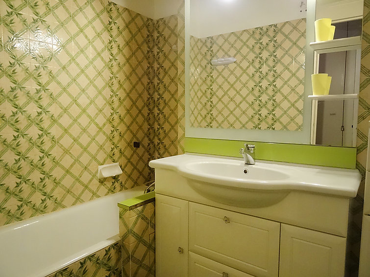 "Les Cascadelles 5", appartement 2-kamers 44 m2 op 2 verdiepingen op de 3e verdieping. Licht, gerenoveerd, comfortabel en mooi ingericht: woon-/eetkamer met 1 2-pers divanbed (140 cm, lengte 190 cm), TV (Flatscreen TV), air-conditioning. Uitgang naar het terras. Open keuken (oven, afwasmachine, 2 keramische glas kookplaten, magnetron). Aparte WC. Elektrische verwarming. Bovenverdieping: (steile trap), 1 kamer met 1 2-pers bed (2 x 90 cm, lengte 190 cm), bad. Terras 8 m2. Terrasmeubelen. Mooi uitzicht op de haven. Ter beschikking: wasmachine, haardroger. Internet (Internet (WiFi), extra). Maximaal 1 huisdier/hond toegestaan. Rookmelders.