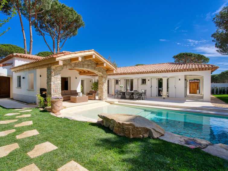 Mooi villa "Célalie", bouwjaar 2022. Buiten de plaats, 4 km van het centrum van Cogolin, rustige ligging, 10 km van zee, 10 km van het strand. Voor alleengebruik: verzorgde tuin 1.300 m2 (omheind), openluchtzwembad (16 x 5 m, 140 cm diepte, seizoensgebonden beschikbaarheid: 01.Mei. - 30.Sep.) met alarminstallatie. WC bij het zwembad, buitendouche, tafeltennis, jeu de boules, onderhoud zwembad door de eigenaar/tuinman. In het huis: sauna, fitnessruimte, hot tub, tafelvoetbal. Beschikbaar: fietsen (2). Winkel 4 km, levensmiddelenwinkel 3.5 km, supermarkt 3.2 km, restaurant 4 km, bushalte "Les Narcisses" 5.9 km, zandstrand "Port Grimaud" 10 km. Jachthaven 10 km, golfterrein (18 holes) 12 km, zeilschool 9 km, manege 5.5 km. Attracties in de buurt: Port Grimaud 10 km, Saint Tropez 16 km, Plages de Pampelonne 21 km, Cannes 85 km, Nice 110 km, Monaco 134 km. Bekende meren kunnen gemakkelijk worden bereikt: Lac de Sainte Croix 85 km. Wandelgebied Massif de l'Esterel 50 km. Auto noodzakelijk.