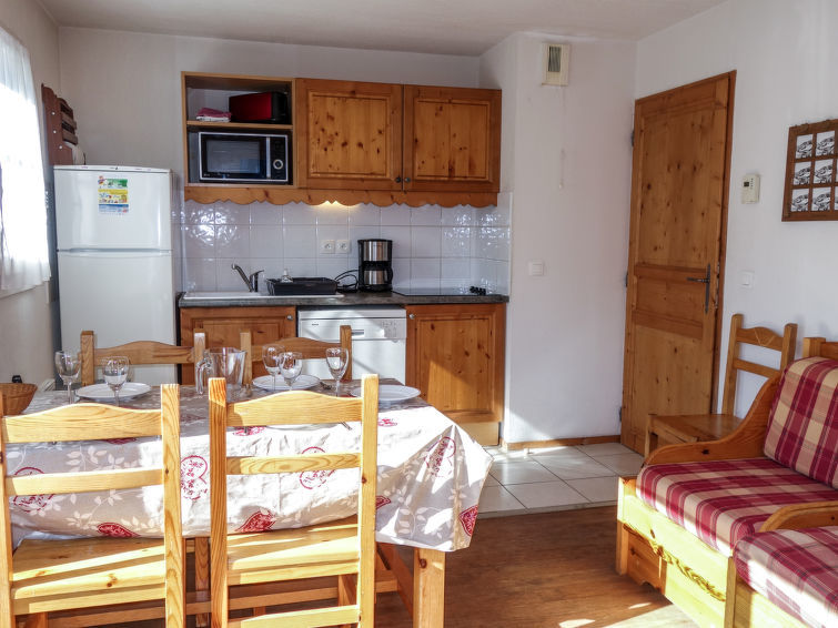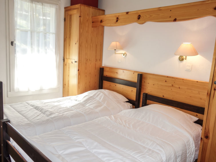 "Le Grand Panorama 412", appartement 3-kamers 42 m2 op de 4e verdieping. Woon-/eetkamer met 1 uitschuifbaar bed, eettafel en TV. Uitgang naar het balkon. 1 kamer met 1 2-pers bed (160 cm, lengte 190 cm), wastafel, douche en TV. 1 kamer met 2 bedden. Open keuken (afwasmachine, 4 keramische glas kookplaten, broodrooster, waterkoker, magnetron, diepvriezer, elektrische koffiemachine). Badkamer, aparte WC. Elektrische verwarming. 2 balkons, op het zuiden gelegen en op het westen gelegen. Balkonmeubilair. Mooi uitzicht op de bergen. Ter beschikking: Internet (Internet (WiFi), extra). Garage nr. 16. TV alleen FR. Rookmelders. FR7450.700.2