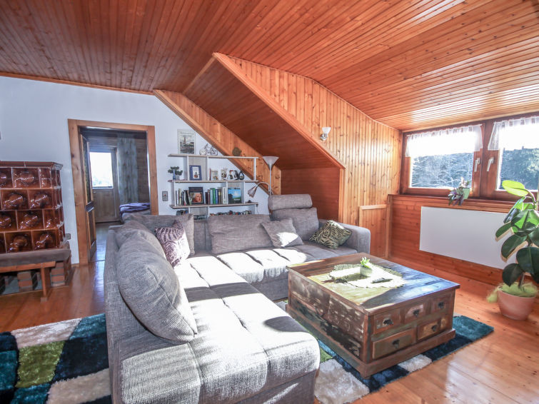 "Magdalensberg", appartement 4-kamers 110 m2, op de bovenste verdieping. Het objekt is geschikt voor 5 volwassenen. Ruim, gedeeltelijk afgeschuinde daken, gezellig en met veel hout ingericht: groot woonkamer met Sat-TV, radio en tegelkachel. 1 2-pers. kamer. Uitgang naar het balkon. 1 2-pers. kamer met wastafel. Uitgang naar het balkon. 1 kamer met 1 2-pers divanbed (160 cm, lengte 200 cm). Groot keuken (oven, afwasmachine, 4 keramische glas kookplaten, magnetron, diepvriezer, elektrische koffiemachine) met eethoek. Bad/douche, aparte WC. Balkon. Balkonmeubilair. Mooi panoramazicht op het landschap. Ter beschikking: Internet (Internet (WiFi), gratis). Geschikt voor families. Niet rokers woning. Rookmelders.