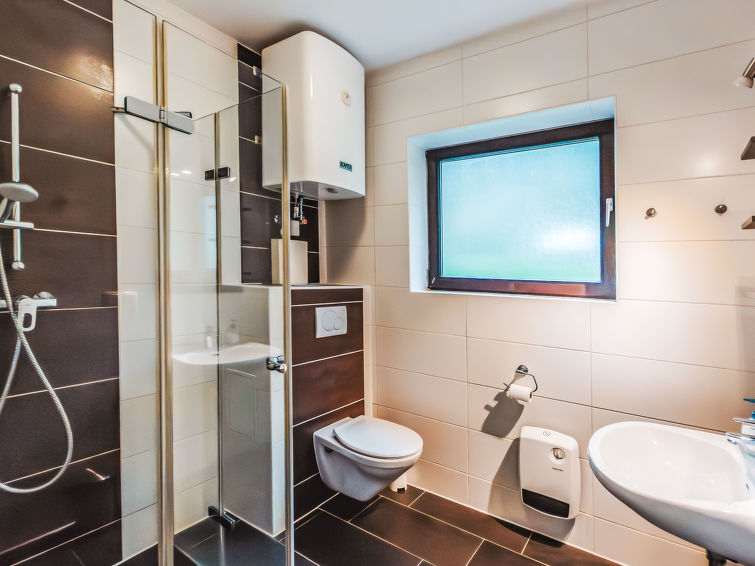 Appartement 2-kamers 72 m2. Ruim en licht, eenvoudig en doelmatig ingericht: hal. Woon-/slaapkamer met 1 divanbed, 1 2-pers bed, eettafel en Kabel-TV (Flatscreen TV), elektrische verwarming. Uitgang naar het balkon. 1 2-pers. kamer met TV (Flatscreen TV). Uitgang naar het balkon. Slaapnis met 1 x 2 stapelbedden (90 cm, lengte 200 cm). Groot, open keuken (oven, afwasmachine, 4 keramische glas kookplaten, broodrooster, waterkoker, magnetron, elektrische koffiemachine). Bad/WC, douche/WC. Parketvloeren. 2 kleine balkons. Balkonmeubilair. Zeer mooi uitzicht op de bergen. Ter beschikking: Internet (WiFi, gratis). Woning aan de straatzijde. 1 huisdier/hond toegestaan. In plaats van een afgesloten slaapkamer bevinden sommige slaapgedeeltes zich in een open ruimte (galerij, nis, etc.). 50403-000513-2023