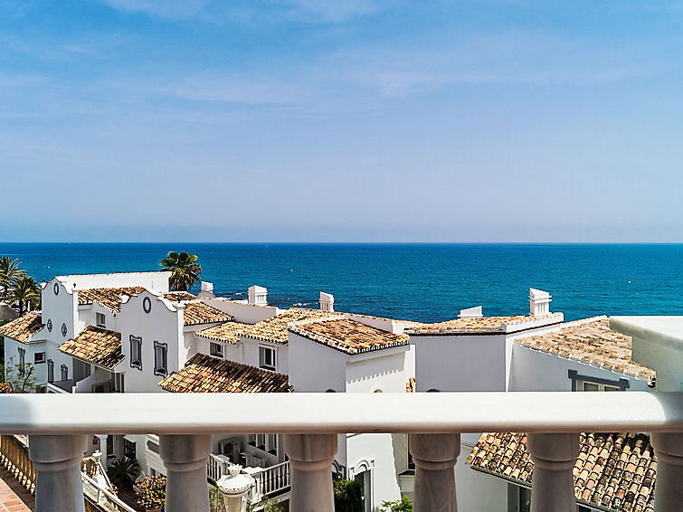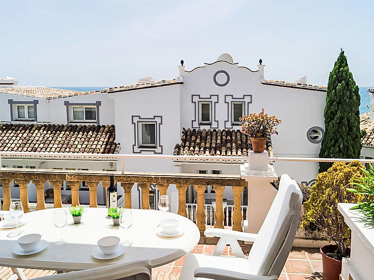 "Mijas Beach", huis in een rij 4-kamers 230 m2 op 2 verdiepingen. Het objekt is geschikt voor 6 volwassenen + 2 kinderen. Gedeeltelijk gerenoveerd in 2016: woon-/eetkamer 40 m2 met 1 2-pers divanbed (135 cm, lengte 190 cm), Digitale TV, air-conditioning en heteluchtverwarming. Uitgang naar het terras. Keuken (oven, afwasmachine, 4 keramische glas kookplaten, magnetron, diepvriezer). Aparte WC. Vloerverwarming. Bovenverdieping: 1 kamer met 1 2-pers bed, bad/bidet/WC, wastafel en TV. Uitgang naar het terras. 1 kamer met 2 bedden en TV. Uitgang naar het terras. 1 kamer met 2 bedden. Bad/bidet/WC. Vloerverwarming. Terras 20 m2. Uitzicht op zee. Ter beschikking: wasmachine, kinderstoel, kinderbed. Internet (WiFi, gratis). Parkeerplaats. VUT/MA/10340 // Reg. Nr.: ESFCTU0000290440001288710000000000000000VUT/MA/103401