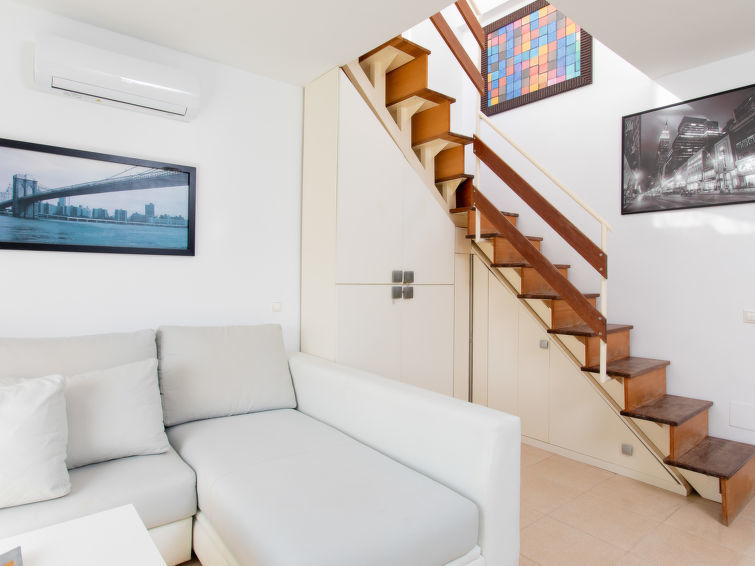 "Penthouse Marian", dakappartement 2-kamers 50 m2. Doelmatig en comfortabel ingericht: woon-/eetkamer met Digitale TV en air-conditioning. Uitgang naar het balkon. 1 kamer met 1 2-pers bed (150 cm, lengte 190 cm), air-conditioning. Open keuken (oven, 4 keramische glas kookplaten, broodrooster, waterkoker, magnetron, diepvriezer, elektrische koffiemachine) met air-conditioning. Bad/WC. Geen verwarmingsmogelijkheid. Terras. Terrasmeubelen, ligstoelen. Zeer mooi uitzicht op zee. Ter beschikking: wasmachine, strijkijzer, kinderbed, haardroger. Internet (WiFi, gratis). VUT/MA/47668 // Reg. Nr.: ESFCTU0000290130008983430000000000000000VFT-MA-476689