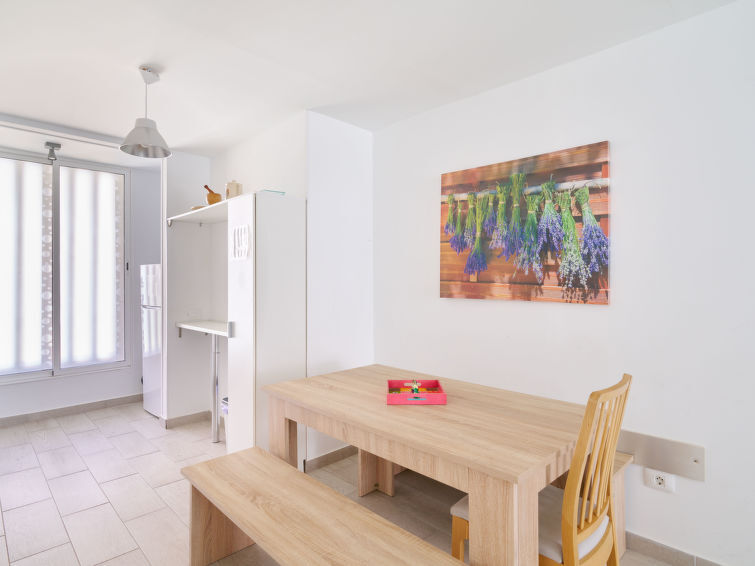 Appartement 2-kamers 75 m2 op de 2e verdieping. Het objekt is geschikt voor 4 volwassenen + 2 kinderen. Doelmatig ingericht: woon-/eetkamer met 1 divanbed (135 cm, lengte 190 cm), Digitale TV. Uitgang naar het terras. 1 kamer met 1 2-pers bed (135 cm, lengte 190 cm). 1 kamer met 1 2-pers bed (135 cm, lengte 190 cm). Open keuken (oven, 4 keramische glas kookplaten, broodrooster, waterkoker, magnetron) met ventilator. Douche/WC. Geen verwarmingsmogelijkheid. Terras 10 m2. Terrasmeubelen. Geen uitzicht. Ter beschikking: wasmachine, strijkijzer, haardroger. Internet (WiFi, gratis). Garage nr. i2 op het terrein. Rookvrij huis. VV-38-4-0088727 // Reg. Nr.: ESFCTU0000380160000868000000000000000VV-38-4-00887272