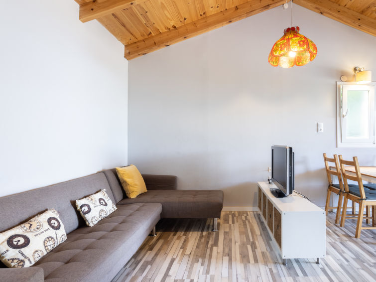Huis 2-kamers 40 m2. Comfortabel en gezellig ingericht: woon-/eetkamer met 1 divanbed (120 cm, lengte 230 cm), Digitale TV en verwarming. Uitgang naar de tuin. 1 kamer met 1 2-pers bed (150 cm, lengte 200 cm). Open keuken in de hal (4 kookpitten (vlammen), broodrooster, waterkoker, elektrische koffiemachine, combimagnetron). Douche/WC. Tuin. Barbecue, zitgelegenheid. Mooi panoramazicht op zee en het landschap. Ter beschikking: wasmachine, strijkijzer, kinderstoel, kinderbed, haardroger. Internet (WiFi). 25485